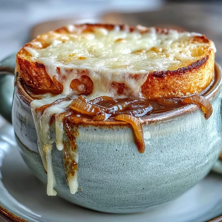 Ich habe durch zahlreiche Versuche gelernt, dass diese Suppe perfekt für die Vorbereitung geeignet ist und im Kühlschrank bis zu drei Tage aufbewahrt werden kann - tatsächlich verbessert sich der Geschmack mit der Zeit. Beim Wiedererwärmen solltest du die Suppe langsam auf dem Herd erhitzen und erst dann das Brot und den Käse hinzufügen, bevor du sie unter den Grill stellst.