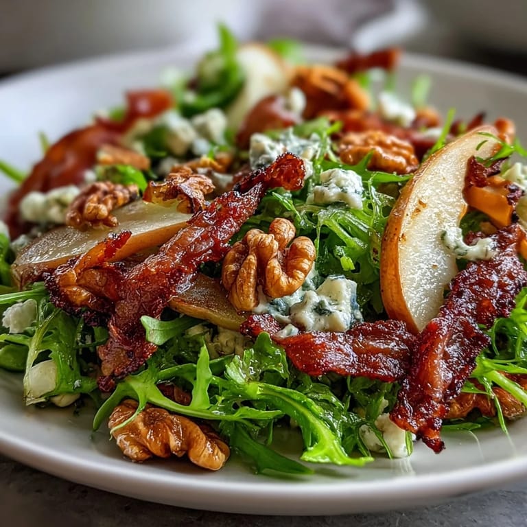 Die meisten Salate sind entweder eintönig grün oder aufdringlich überladen—dieser hier findet ein Gleichgewicht. Die Bitterkeit des Frisée wird durch die natürliche Süße der Birnen beruhigt, während der salzige Käse und der knusprige Prosciutto wie ein spannendes Finale wirken. Es ist wie eine kleine Symphonie auf dem Teller, und jede Komponente spielt eine wichtige Rolle.