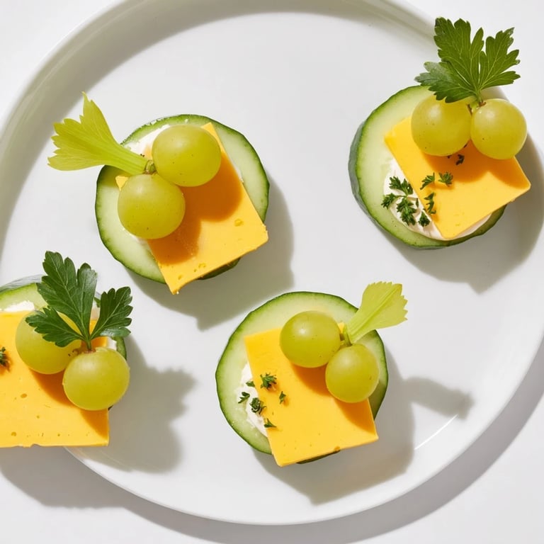 - Schneide zunächst alle Gurken in gleichmäßige Scheiben. Es hilft wirklich, wenn du dir beim Schneiden Zeit nimmst und die Dicke konsistent hältst. Dann schneidest du deine Käsescheiben zu, halbierst deine Trauben oder Tomaten und legst alles auf ein sauberes Schneidebrett, bevor du beginnst zu arrangieren. Diese kleine Vorbereitung macht den nächsten Schritt viel flüssiger.