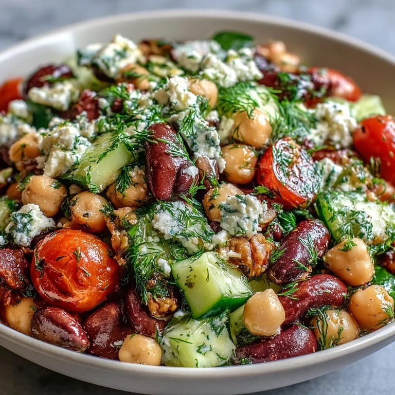 Du kannst die Bohnenmischung nach Belieben ändern – schwarze Bohnen oder weiße Bohnen funktionieren genauso gut. Für zusätzlichen Crunch füge dünn geschnittene Paprika oder Radieschen hinzu. Wenn du keinen Feta magst oder Milchprodukte meidest, schmeckt der Salat auch ohne oder mit einer veganen Feta-Alternative hervorragend. Manche meiner Freunde geben geröstete Pinienkerne oder Sonnenblumenkerne für Extra-Biss dazu.