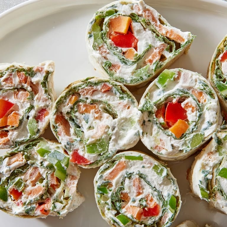 Merken Bunte Tortilla-Pinwheels gefüllt mit cremigem Käse, knackigem Gemüse und festlichen Aromen – perfekt für Feiertagspartys oder gemütliche Zusammenkünfte.