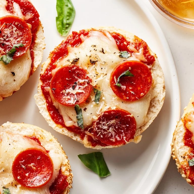 Merken Meine Tochter kam eines Nachmittags nach der Schule herein und fragte, ob ich etwas Besonderes zum Snacken hätte—etwas, das nicht nur langweilig altbacken war. Ich kramte ein paar Mini-Bagels aus dem Gefrierfach hervor, und während ich sie aufschnitt, kam mir die Idee, sie wie kleine Pizzen zu belegen. Was als schnelle Lösung begann, wurde zu ihrem absoluten Favoriten, und bald bat sie mich, diese winzigen Pizzaschöpfungen jede Woche zu machen. Die Kombination aus knusprigem Bagel, geschmolzenem Käse und knackiger Pepperoni ist so einfach, dass es fast zu schade ist, wie schnell sie verschwinden.