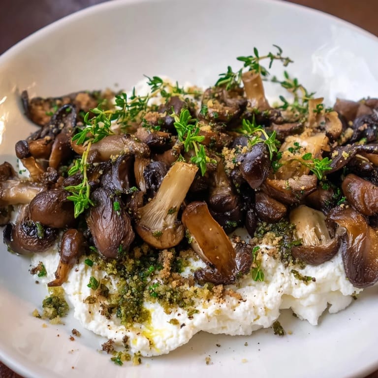 - Pilze: 300 g gemischte Waldpilze (Shiitake, Cremini, Austernpilze), 2 EL Olivenöl, 1 EL ungesalzene Butter, 2 Knoblauchzehen, gehackt, 1 TL frische Thymianblätter, Salz und Pfeffer nach Geschmack