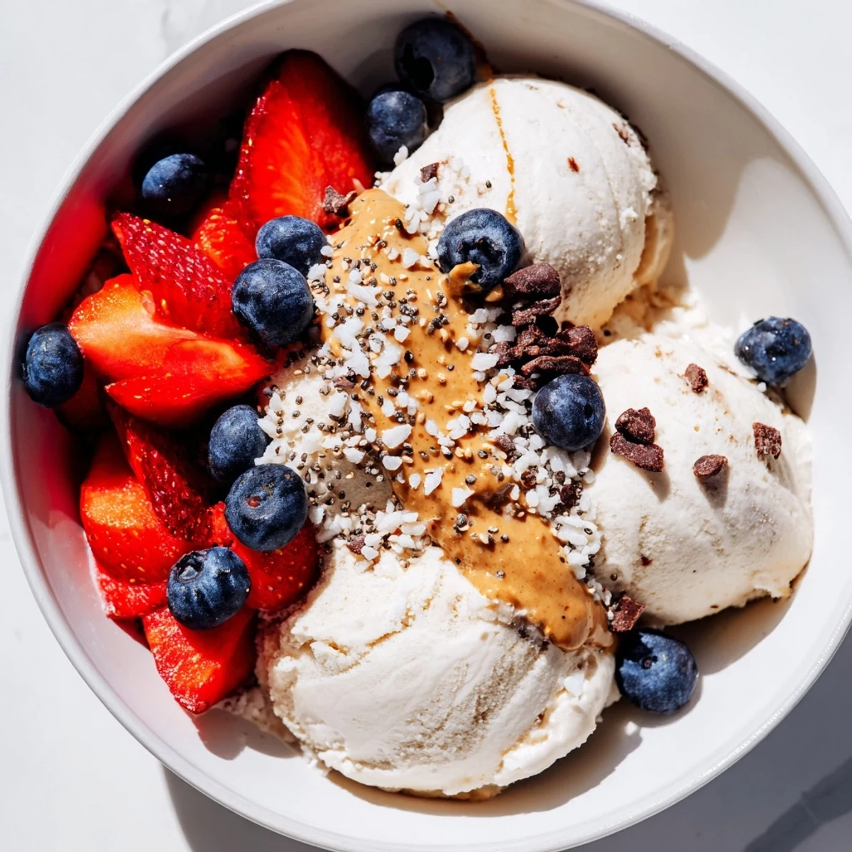 - Protein Geheimnis: Behalte immer ein paar Toppings im Gefrierschrank, so dass sie nicht in dein warmes Eis schmelzen.