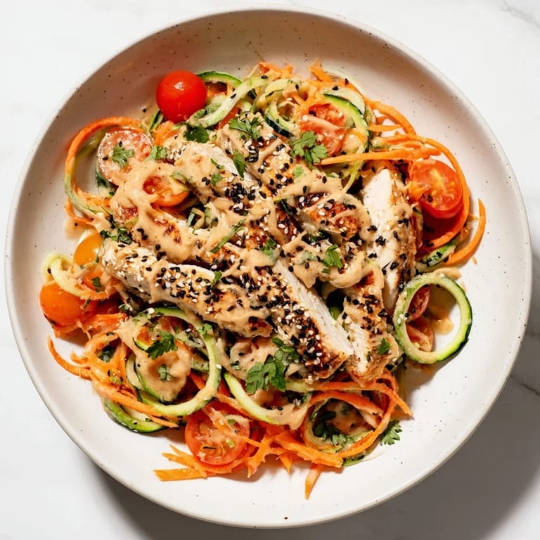 Ich habe gelernt, dass dieser Salat flexibel ist, ohne seine Identität zu verlieren. Manche Tage mag ich gegrillte Champignons statt Hähnchen, an anderen Tagen werfe ich gekochte Shrimps darein. Im Winter, wenn ich keine Lust auf kalt habe, verwandle ich alles zu einer Stir-Fry-Schale mit warmer Nudel. Die Dressing bleibt gleich, und plötzlich hast du ein völlig anderes Gericht, das sich aber vertraut anfühlt. Edamame, ein weiches Ei oder sogar Tofu funktionieren alle wunderbar und geben dir Extra-Protein ohne viel zusätzliche Arbeit.