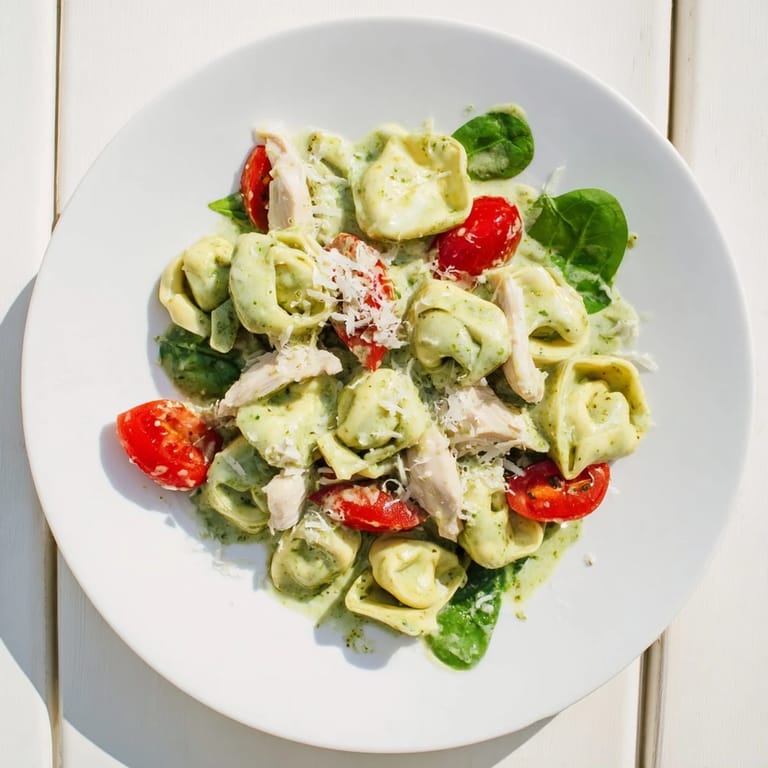Merken When you need a meal that is both comforting and incredibly fast, this Creamy Pesto Tortellini Skillet is the perfect choice. This dish brings together tender cheese-filled pasta, juicy shredded rotisserie chicken, and a luxurious basil pesto sauce for a dinner that tastes like it came from a professional kitchen, but only takes 25 minutes to prepare.