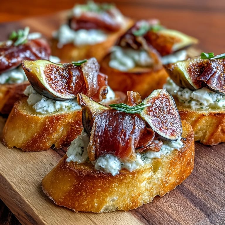 Merken Ich entdeckte diese Crostini an einem warmen Sommerabend auf einem italienischen Markt, wo eine ältere Frau sie direkt aus dem Ofen verkaufte. Der Duft von knusprigem Brot und dem salzigen Schinken vermischte sich mit der Süße der frischen Feigen, und ich wusste sofort, dass ich dieses Rezept nachkochen musste. Seitdem sind sie mein Geheimtipp für jeden Besuch geworden.