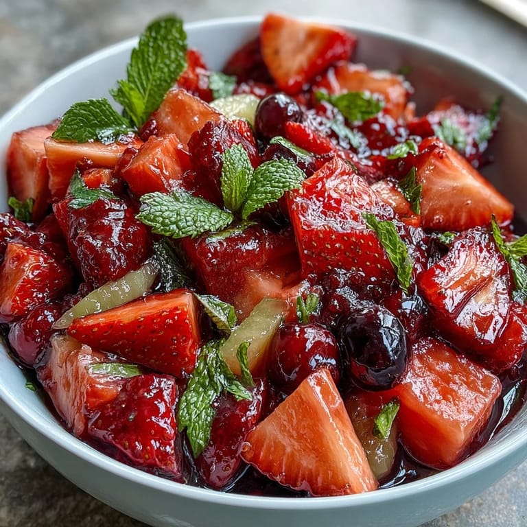 This colorful fruit salad pairs beautifully with grilled chicken, sandwiches, or light picnic fare, making it a versatile side dish for summer meals. Serve it in a clear glass bowl to showcase the vibrant colors, or portion it into individual cups for easy serving at outdoor gatherings. It also makes a delightful breakfast alongside yogurt and granola, or can be enjoyed on its own as a healthy snack. For brunch gatherings, present it in a hollowed-out watermelon half for an impressive display that's sure to wow your guests.