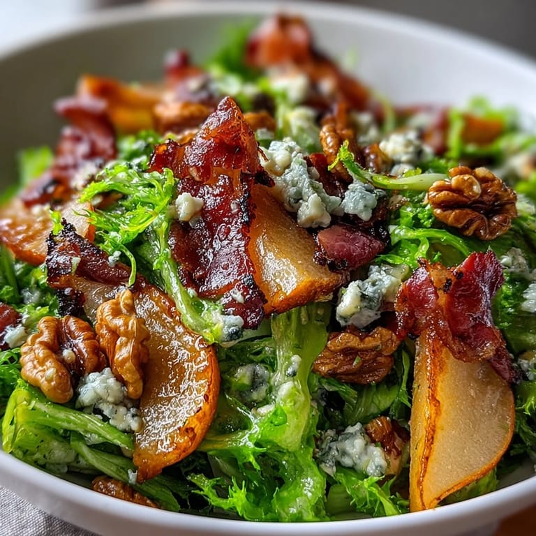 Die meisten Salate sind entweder eintönig grün oder aufdringlich überladen—dieser hier findet ein Gleichgewicht. Die Bitterkeit des Frisée wird durch die natürliche Süße der Birnen beruhigt, während der salzige Käse und der knusprige Prosciutto wie ein spannendes Finale wirken. Es ist wie eine kleine Symphonie auf dem Teller, und jede Komponente spielt eine wichtige Rolle.
